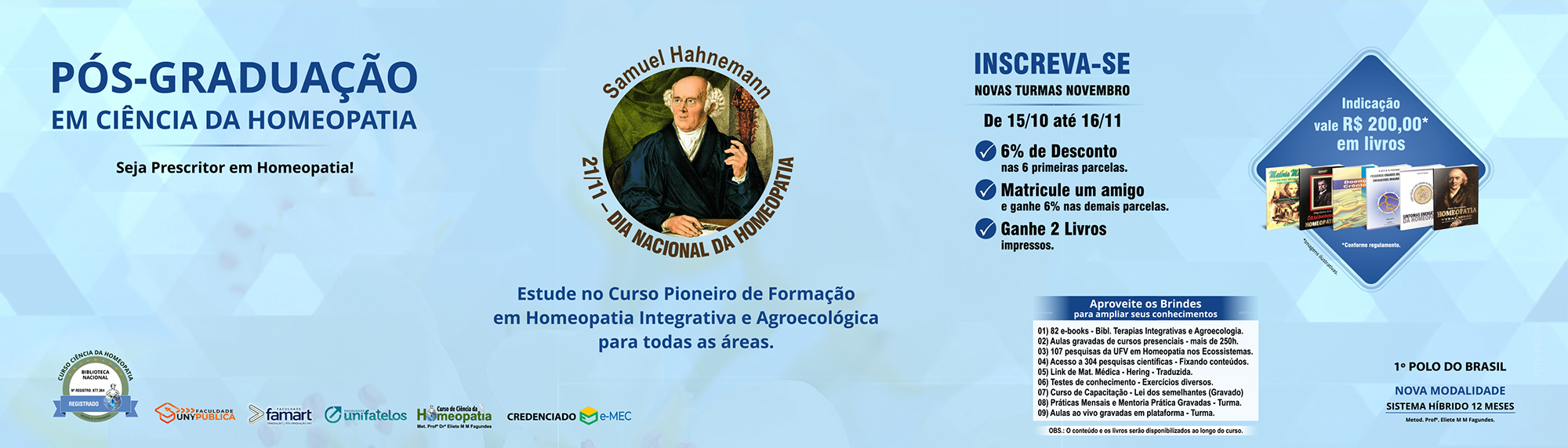 Ofertamos os nossos conhecimentos para todos os alunos da FARMAT que estejam interessados em atuar com a Homeopatia – Curso de Pós-Graduação Especialização Lato Sensu em Ciência da Homeopatia e Curso de Extensão Universitária em Ciência da Homeopatia.